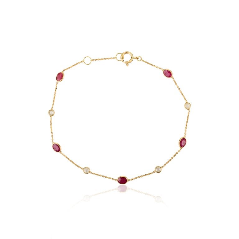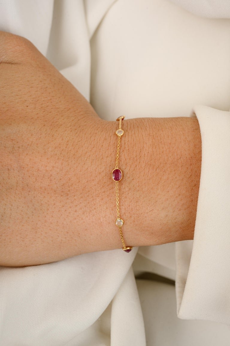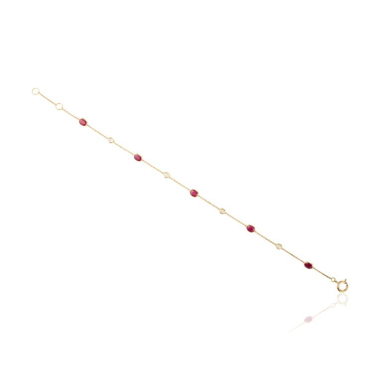 优雅的 14K 纯金链式手镯,缀有鲜艳的红宝石和闪亮的钻石,是为任何服饰增添奢华气息的完美之选。