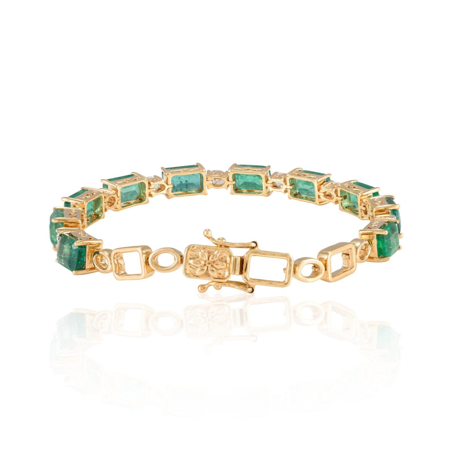 18K 纯金八角形祖母绿钻石网球手链