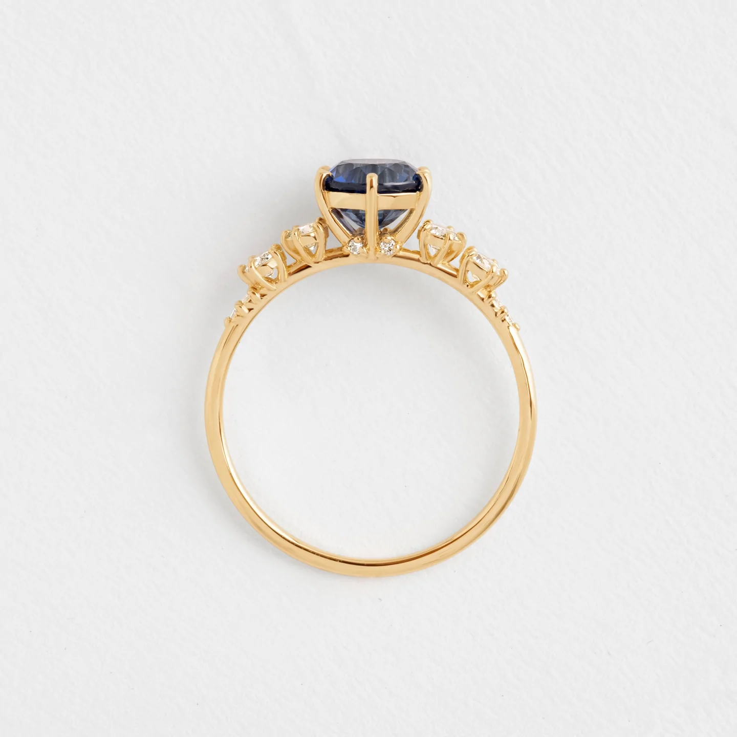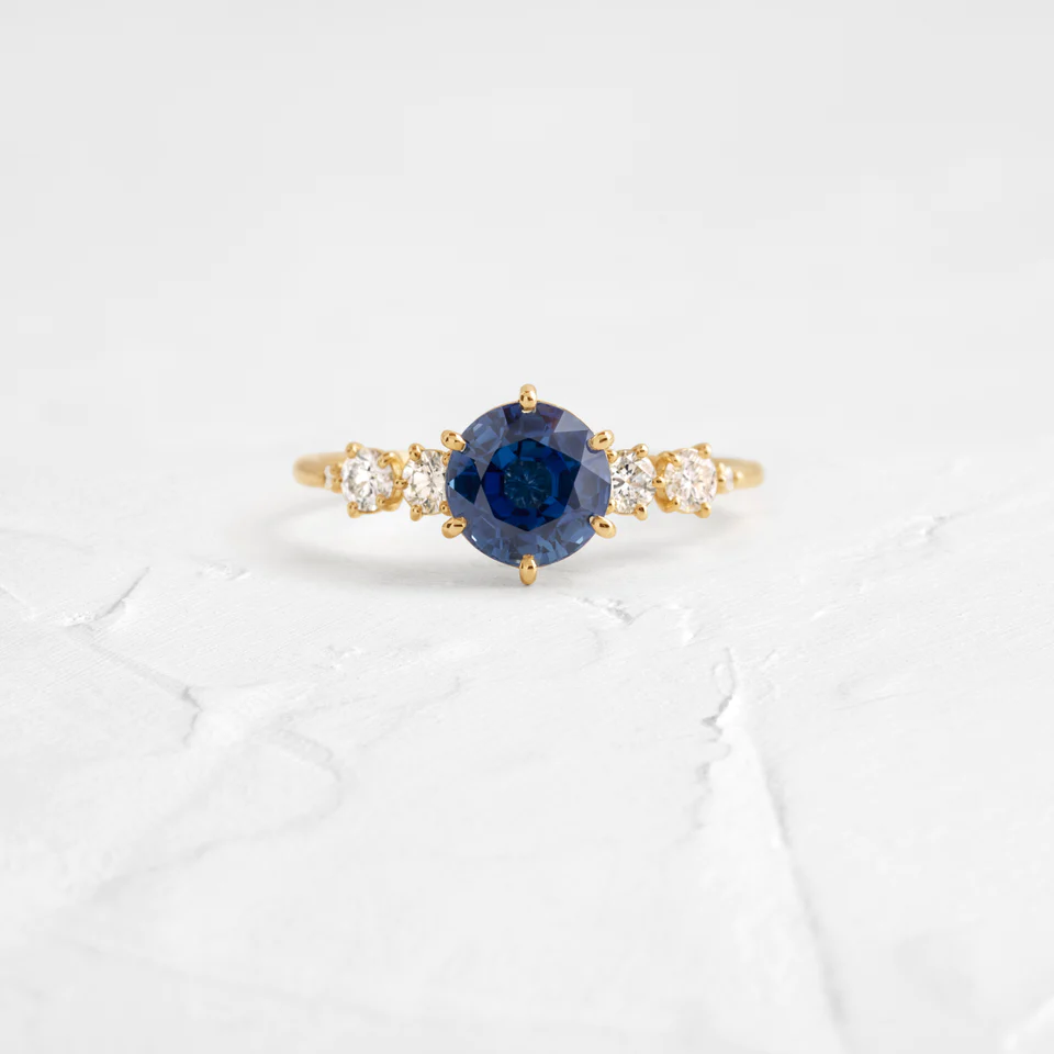 优雅的 18k 纯金戒指,镶嵌圆形切割蓝宝石,打造永恒精致、丰富色彩和日常优雅。