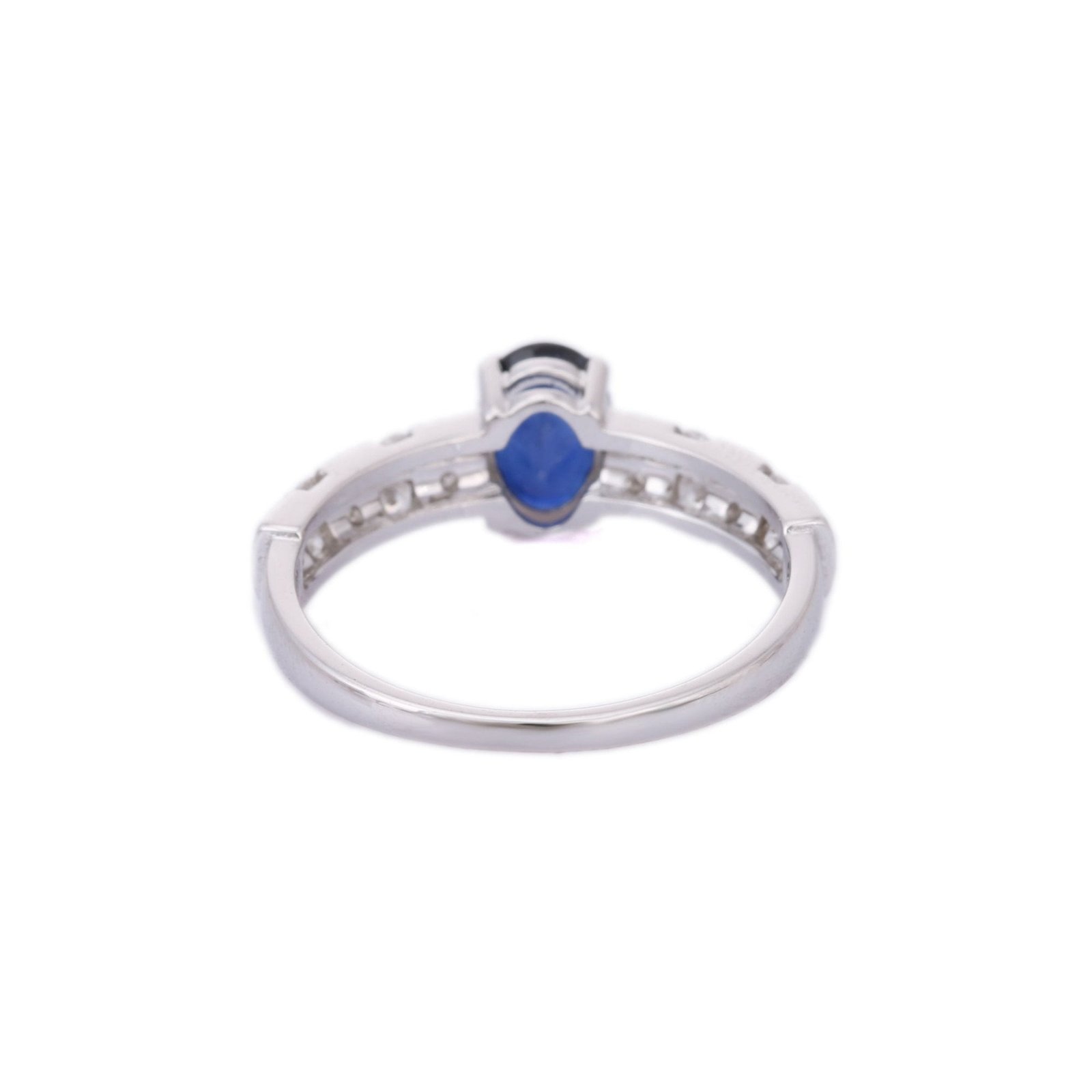 这枚令人惊艳的戒指中央镶嵌着一颗迷人的椭圆形蓝宝石,重0.89克拉。这颗蓝宝石尺寸为7 x 5毫米,经过精湛的切割,最大限度地展现了其璀璨的光芒和浓郁的色泽。浓郁的蓝色象征着智慧和皇室贵族的尊贵气质,更添一丝精致与优雅。椭圆形的蓝宝石造型经典而现代,无论正式场合还是休闲场合,都适合佩戴。
