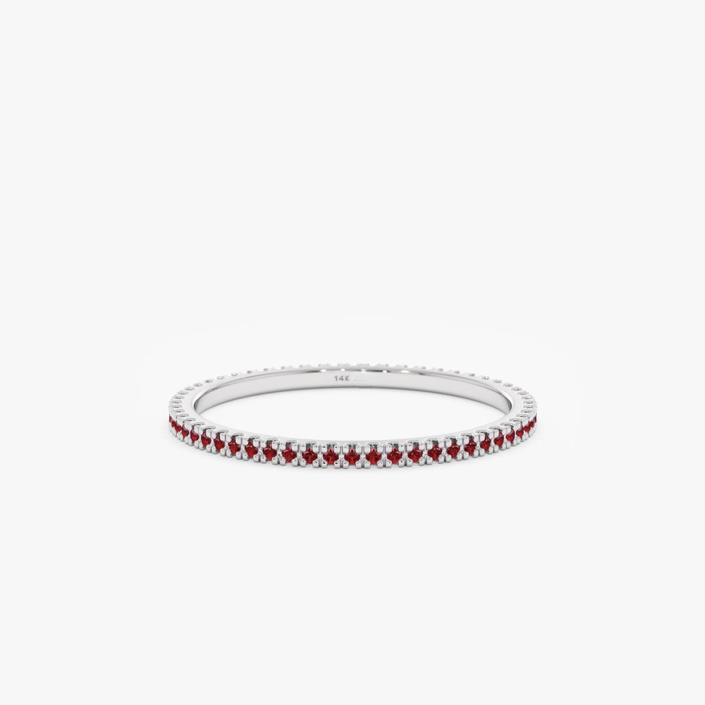 拥抱七月生日的美好,感受红色的魅力,我们精美的爪镶红宝石永恒戒指,象征着优雅、激情和永恒的爱。这款精致的戒指由手工精心打造,一圈爪镶天然红宝石环环相扣,营造出令人着迷的鲜艳红色调,象征着永恒与承诺。