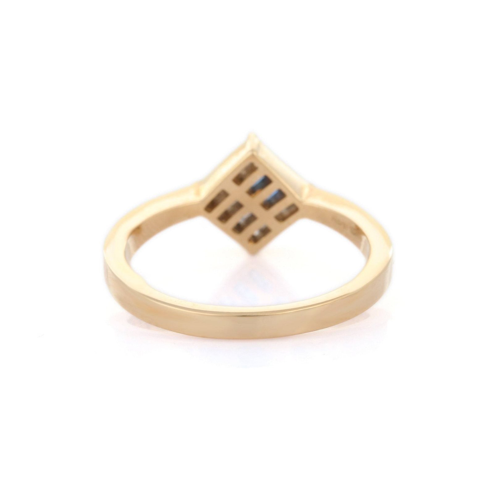 沉浸在这永恒的优雅之中 18k纯金蓝宝石戒指,真正彰显精湛工艺与精致设计。这款精美戒指采用18K纯金打造,镶嵌四颗切割精美的方形蓝宝石,每颗直径1.2毫米。这些蓝宝石总重0.10克拉,经过精心挑选,拥有深邃的蓝色和卓越的净度。