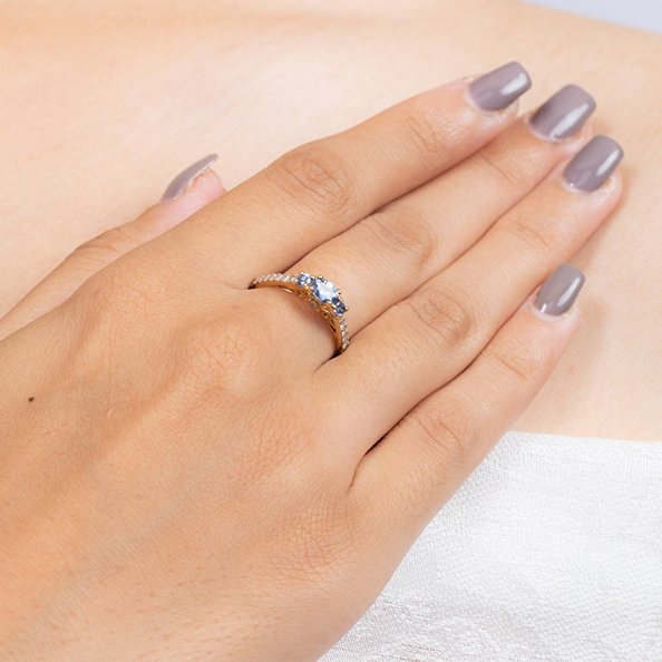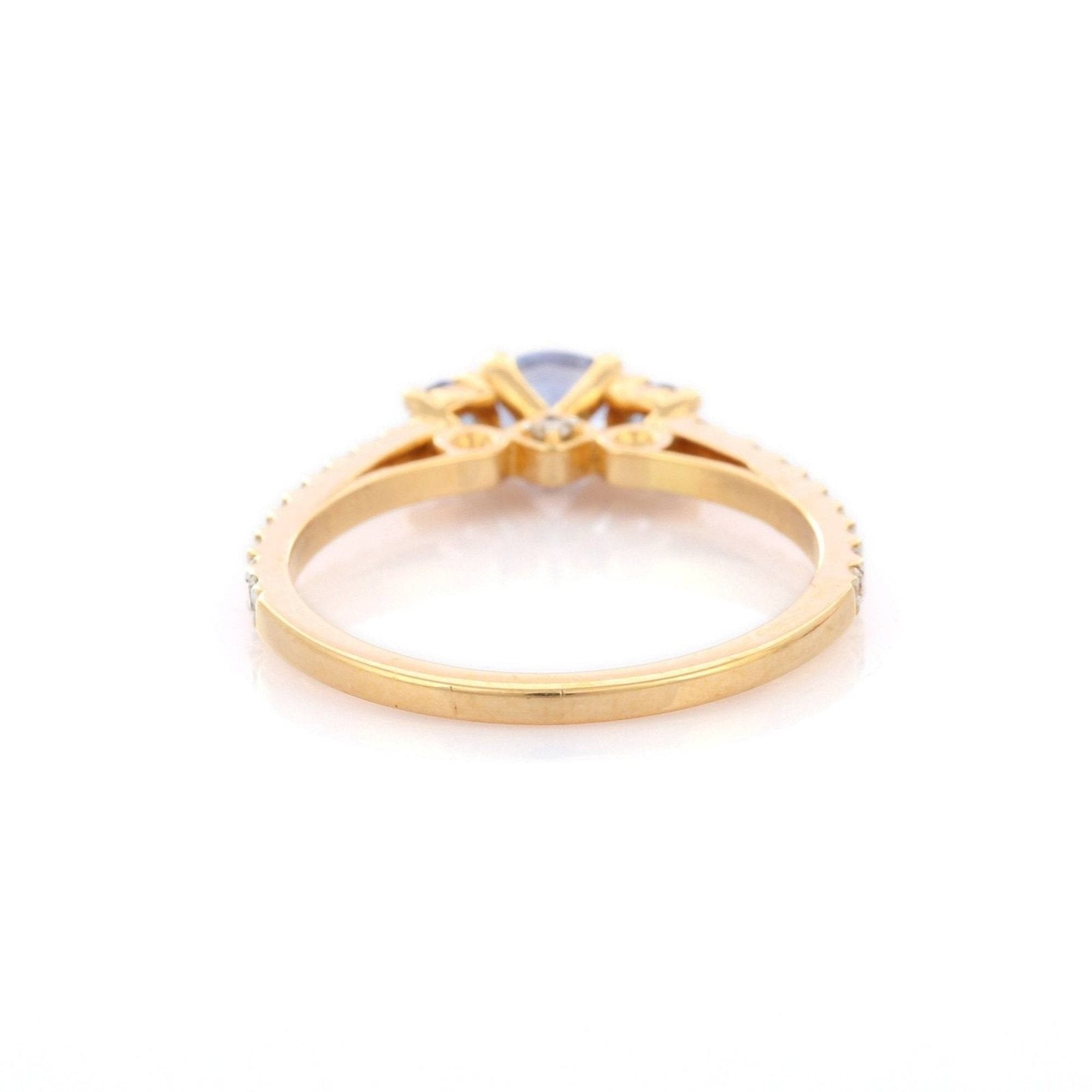 18K纯金戒圈经过完美抛光,饱满温暖的色调与璀璨夺目的蓝宝石相得益彰。戒指净重2.301克,轻巧耐用,适合日常佩戴,亦可留待特殊场合佩戴。