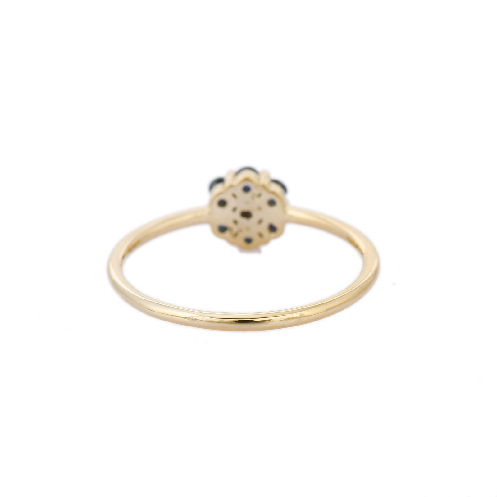 迷人的 18k 纯金戒指,采用镶嵌蓝宝石的花朵设计——具有永恒的美丽、丰富的色彩和优雅的气质。