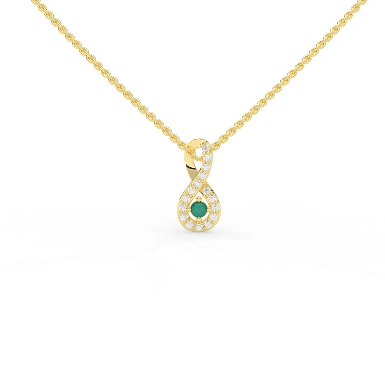 "(《世界人权宣言》) 18k 纯金绿宝石项链,镶嵌光环钻石 来自 The Karat Store 的这款珠宝令人惊艳,散发着奢华与优雅。这款精美的珠宝采用优质 18k 金打造,中央镶嵌一颗璀璨的祖母绿,周围环绕着一圈璀璨的钻石。