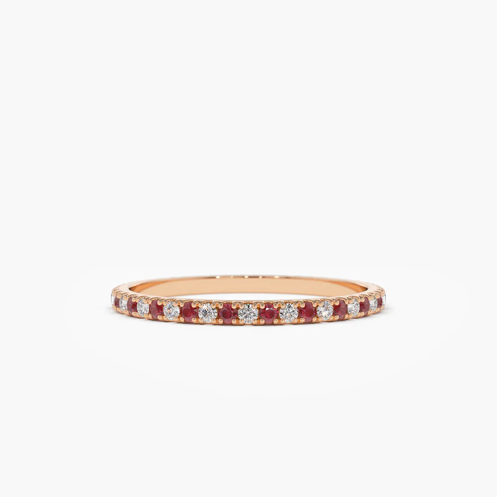 介绍令人惊叹的 18k 纯金红宝石和钻石交替永恒戒指它是优雅和精致的缩影。