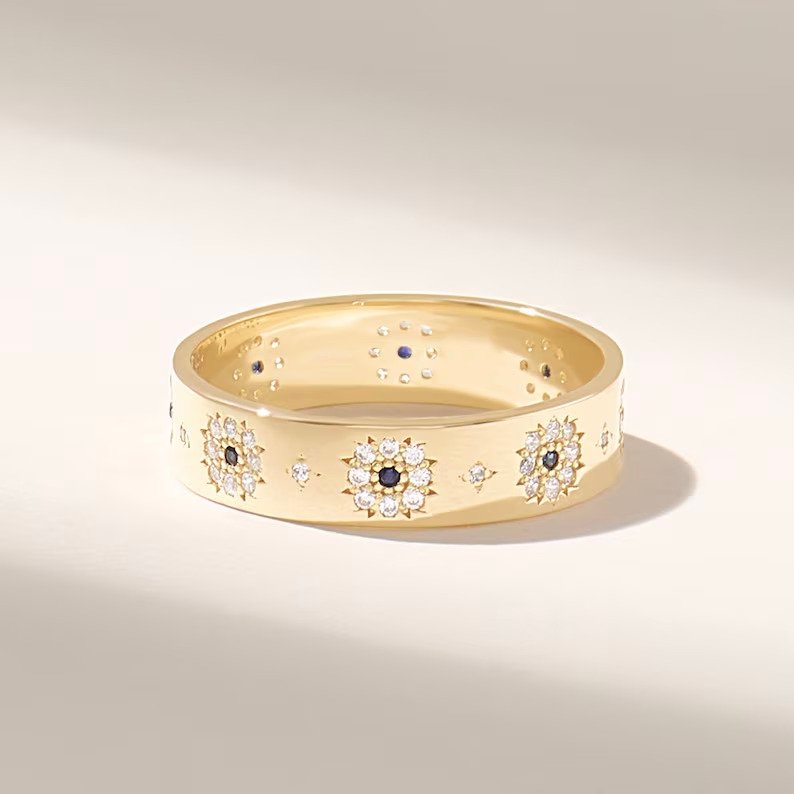 对于那些珍视自然之美和精美宝石优雅的人来说,蓝宝石花戒指是一个美丽的选择。