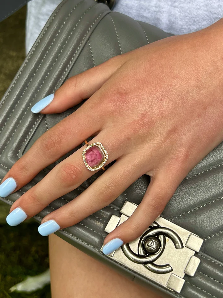 18K纯金西瓜切片碧玺戒指,镶有钻石