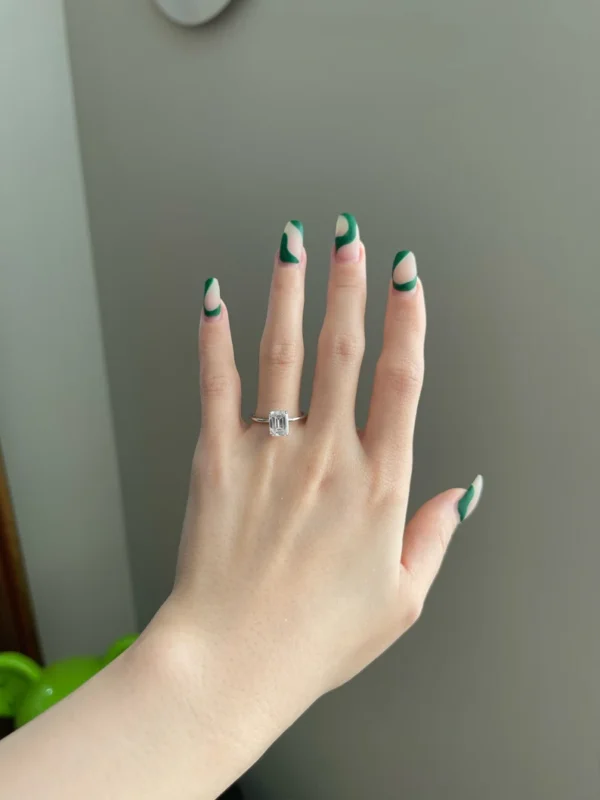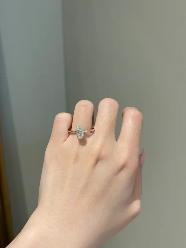 2克拉明亮式长椭圆形切割莫桑石隐形单石订婚戒指