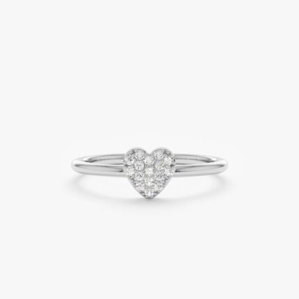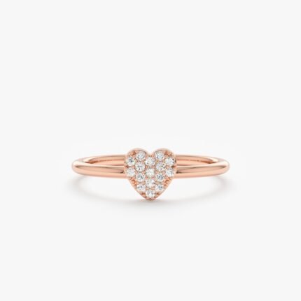 14K 纯金密镶天然钻石心形戒指